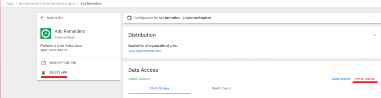 4b) Revoke access (the app won't be able to access your Google Drive and other G Suite services).